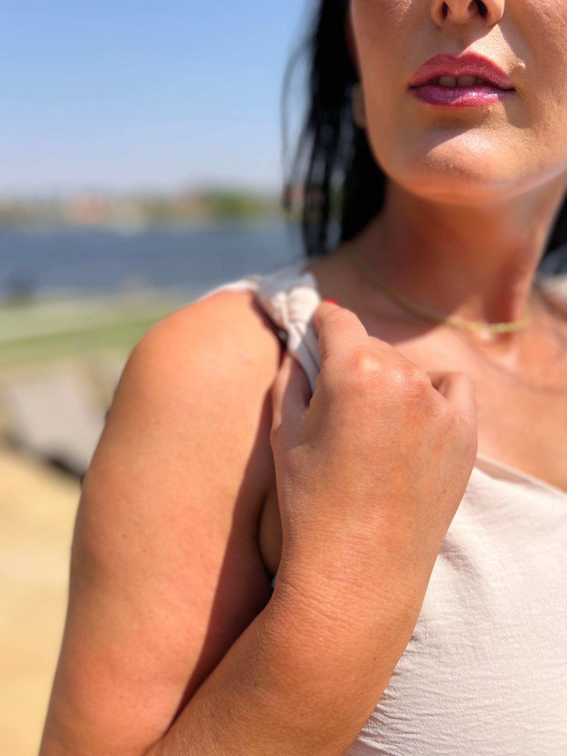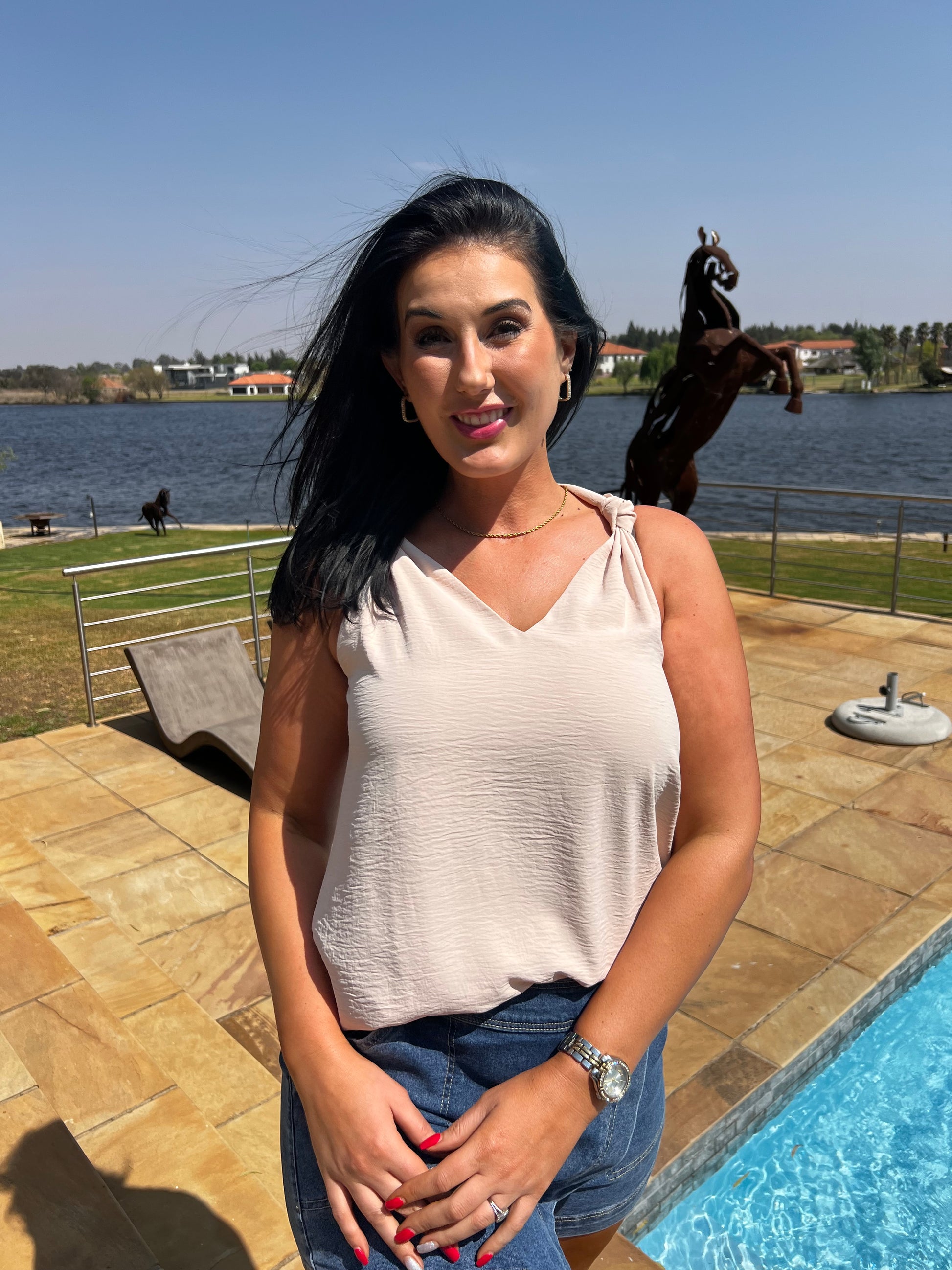 Cream Knotted Shoulder V-Neck Sleeveless Top